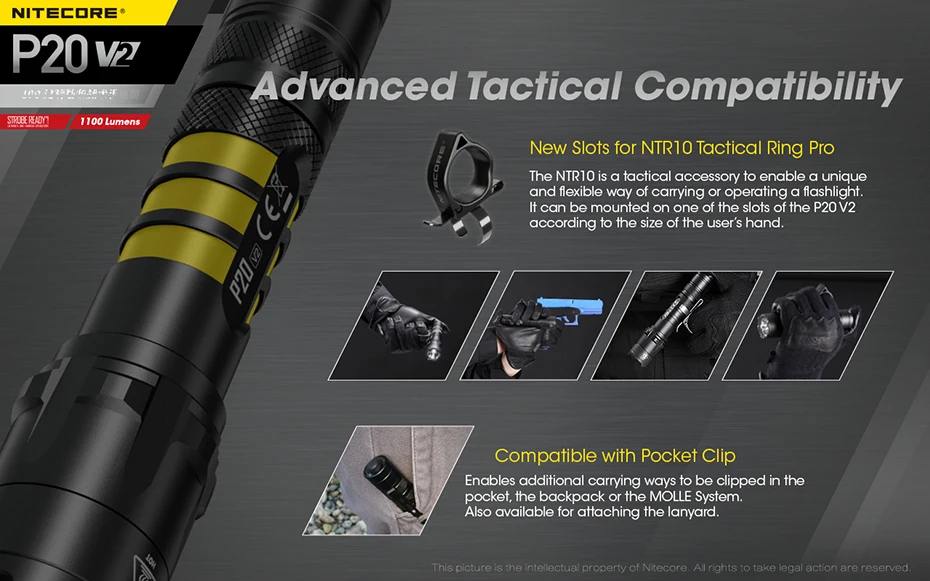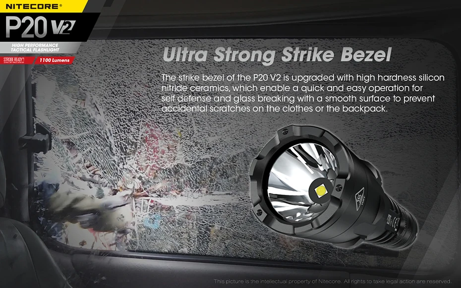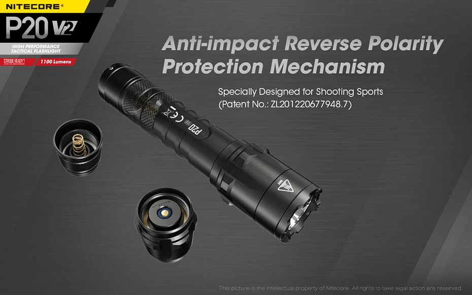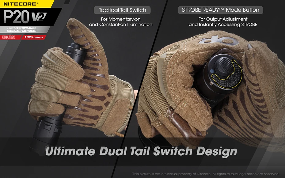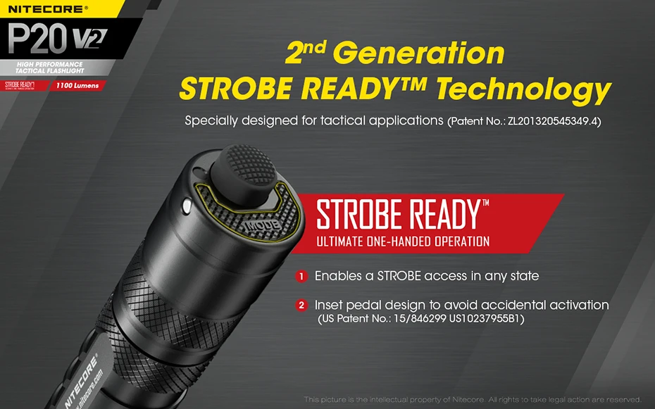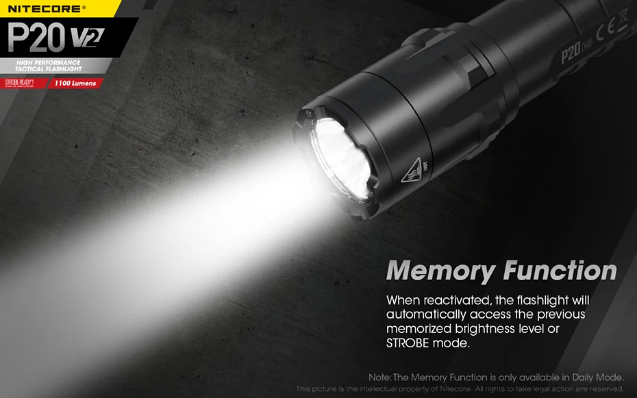 NITECORE P20 V2 Strong Light 1100 Lumens Instantaneous Flash LED Portable Tactical Flashlight Search Torch Lamp18650 Battery