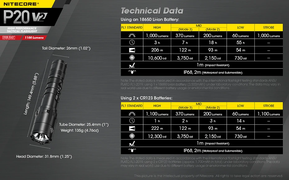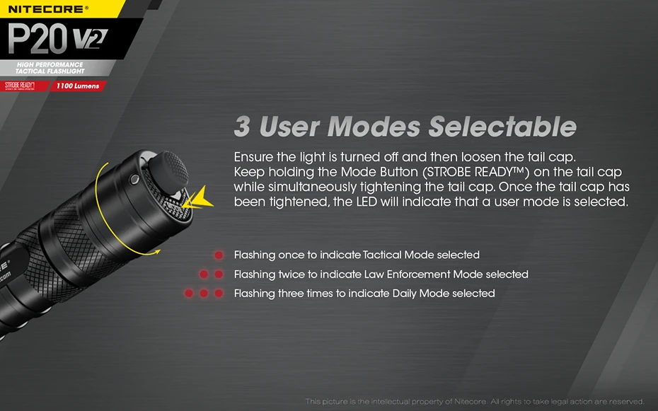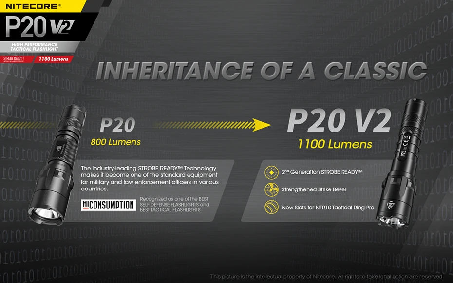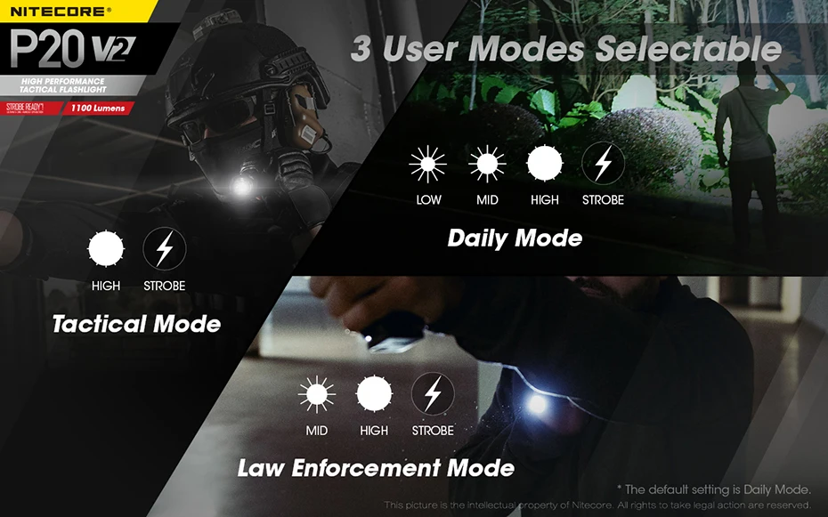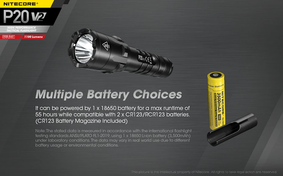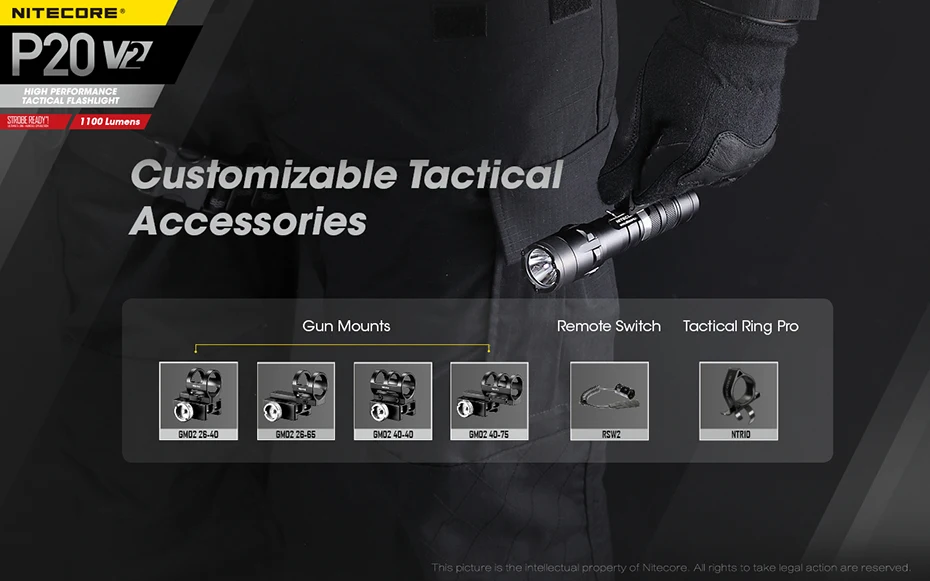 NITECORE P20 V2 Strong Light 1100 Lumens Instantaneous Flash LED Portable Tactical Flashlight Search Torch Lamp18650 Battery